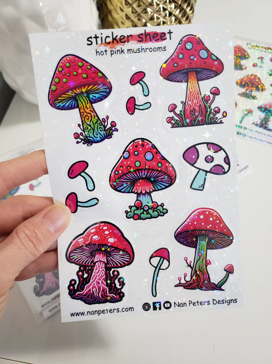 Hot Pink Mushroom Sticker Sheet